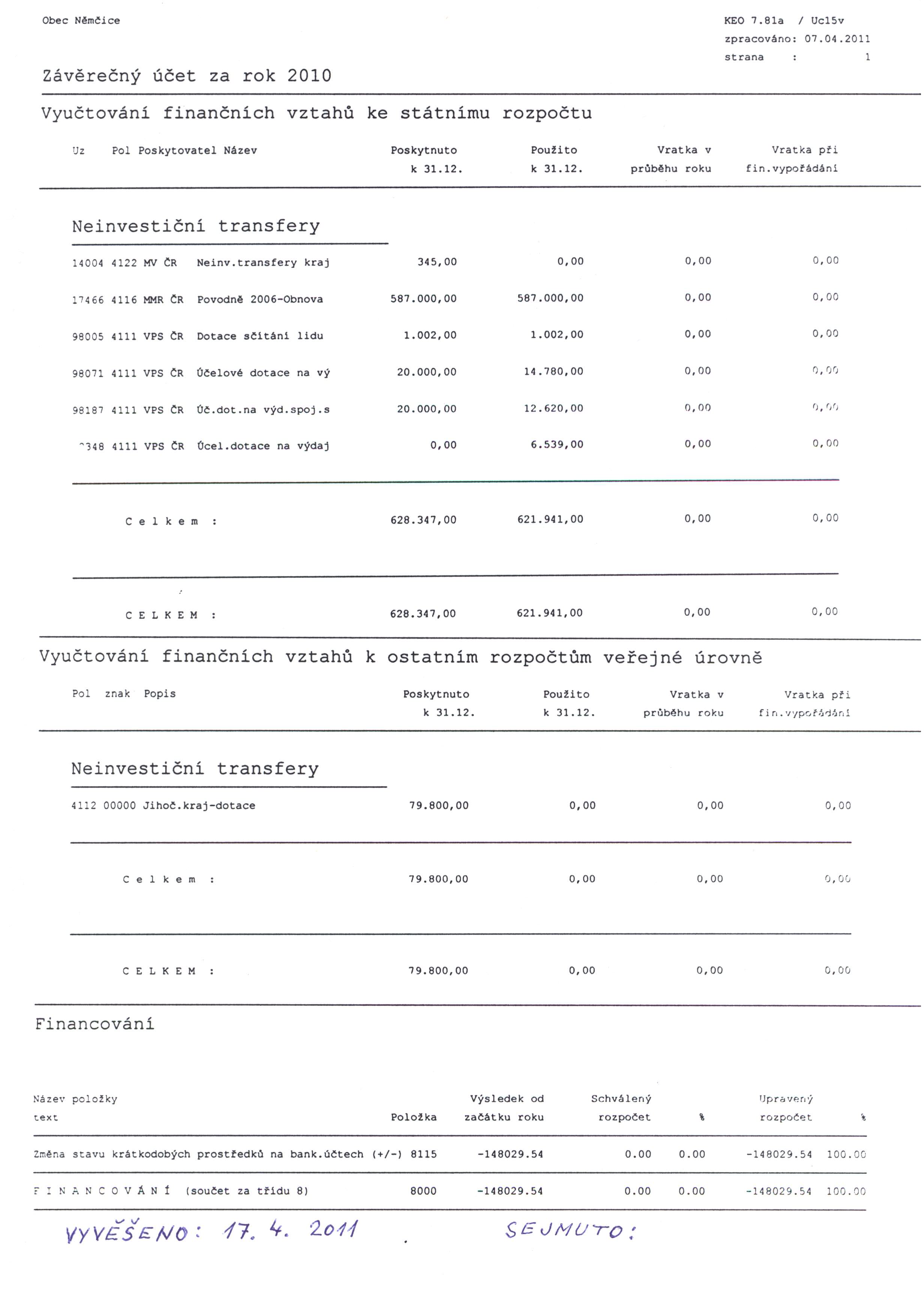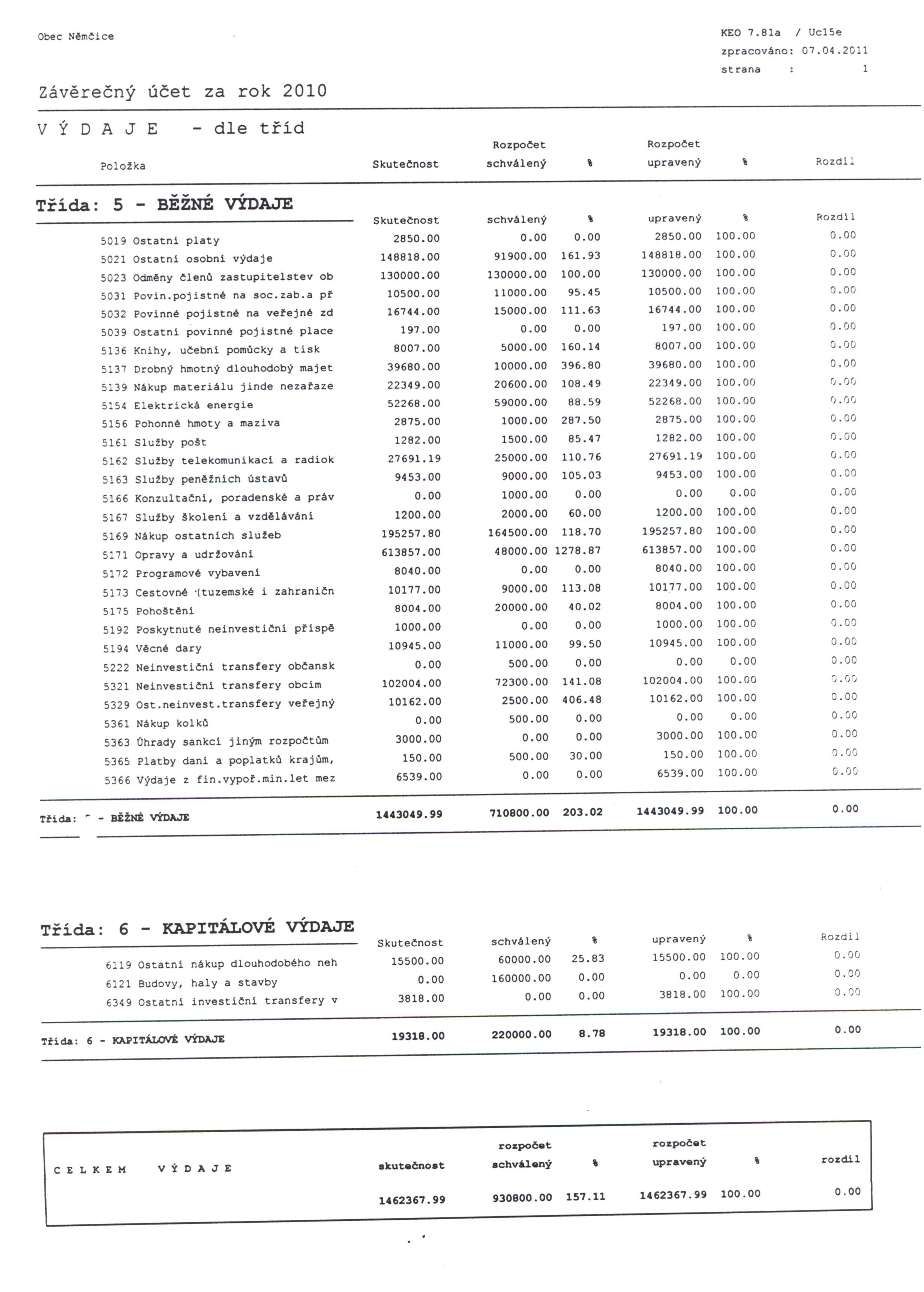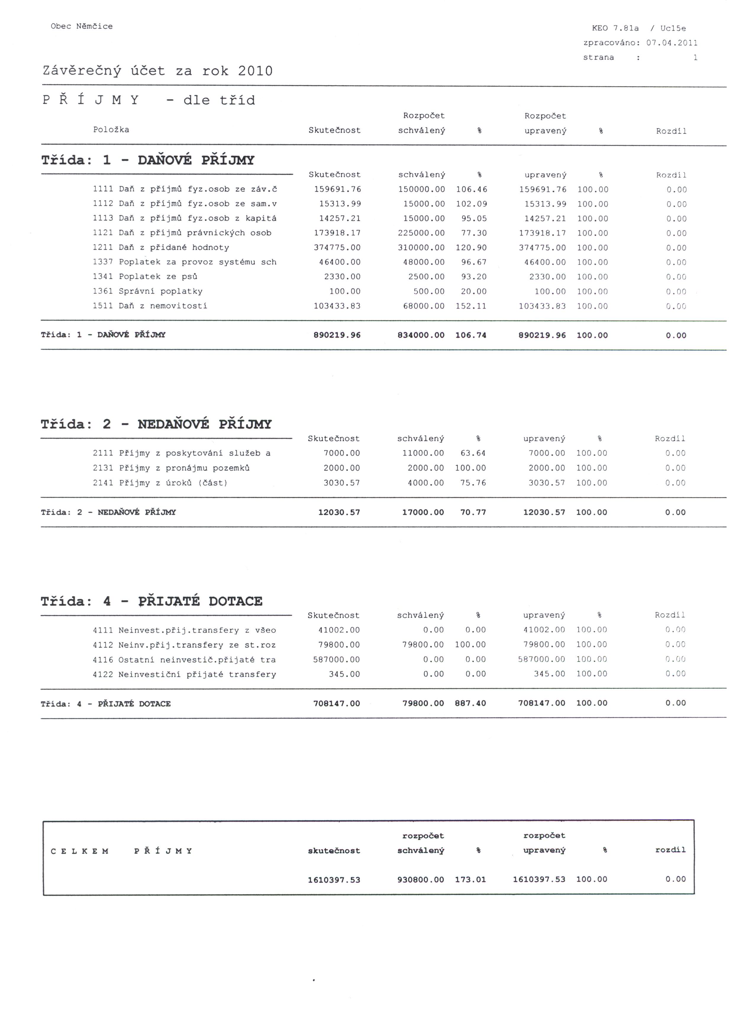 Závěrečný účet obce Němčice 2010