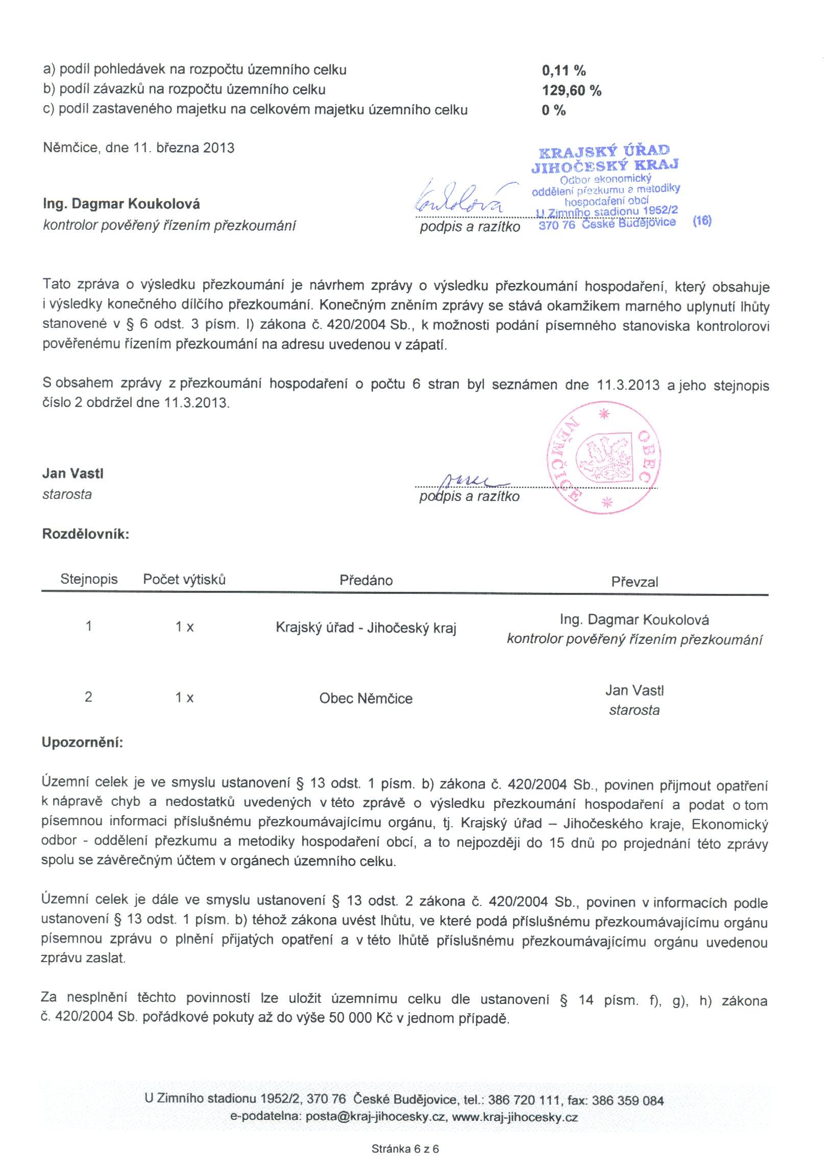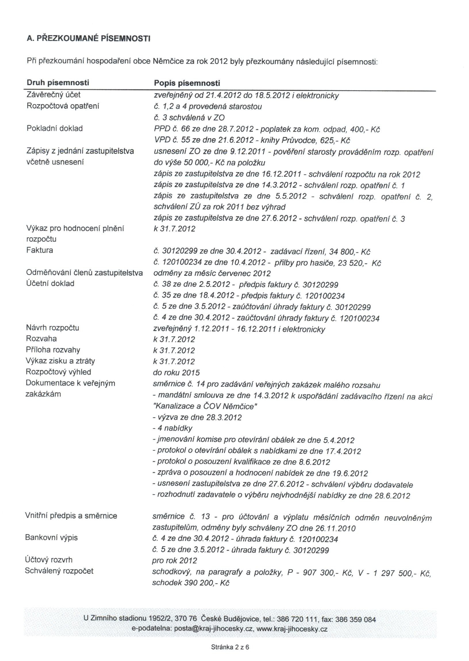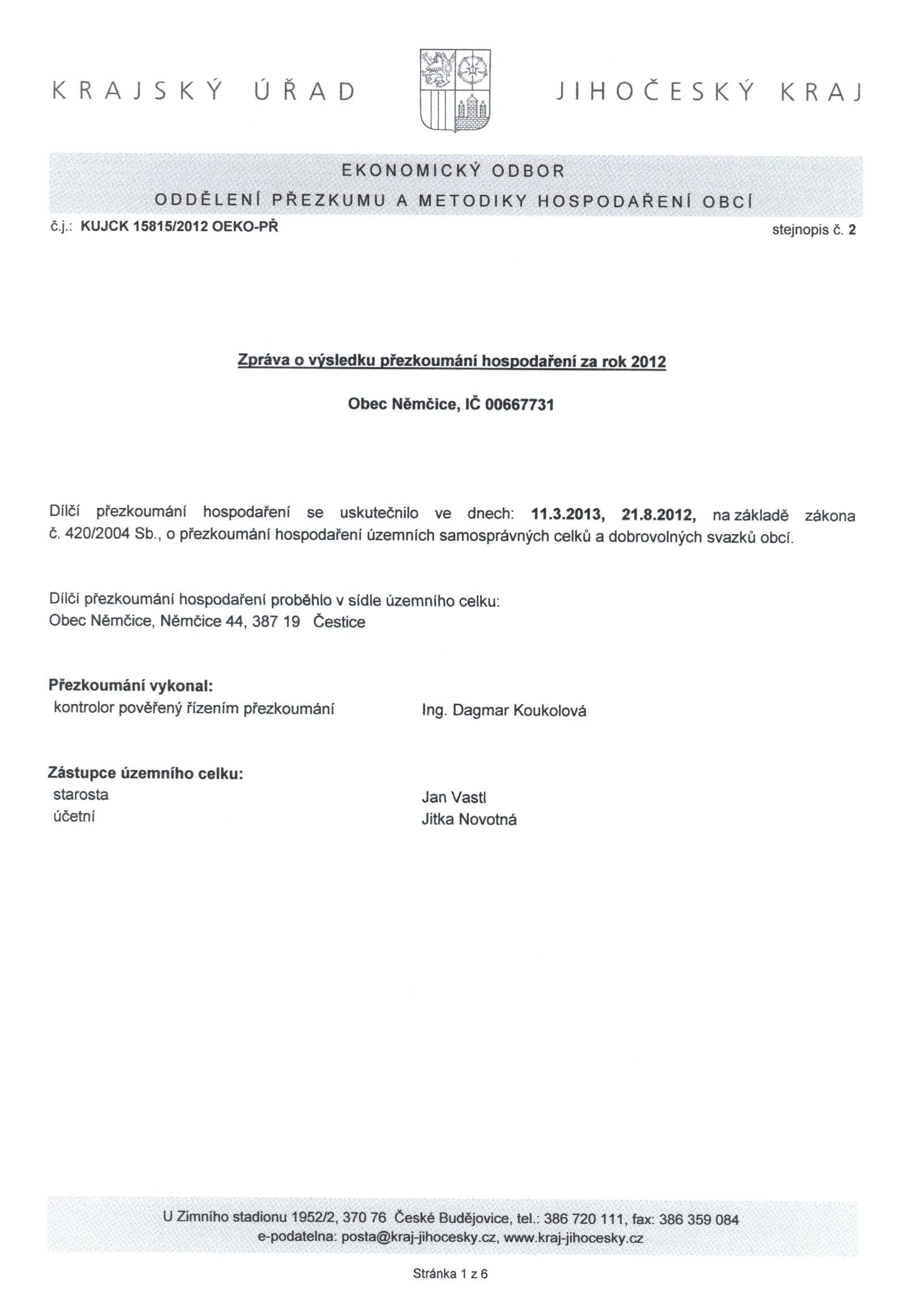 Závěrečný účet obce Němčice 2012